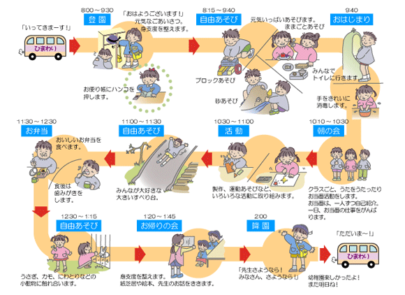 ※冬時間(12月~2月)は、30分早くなり、午後1:30降園になります。